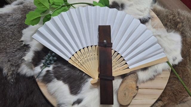 Praktisch én charmant – deze handgemaakte leren waaierhouder van Funtasia Factory maakt het dragen van je waaier makkelijk en stijlvol.